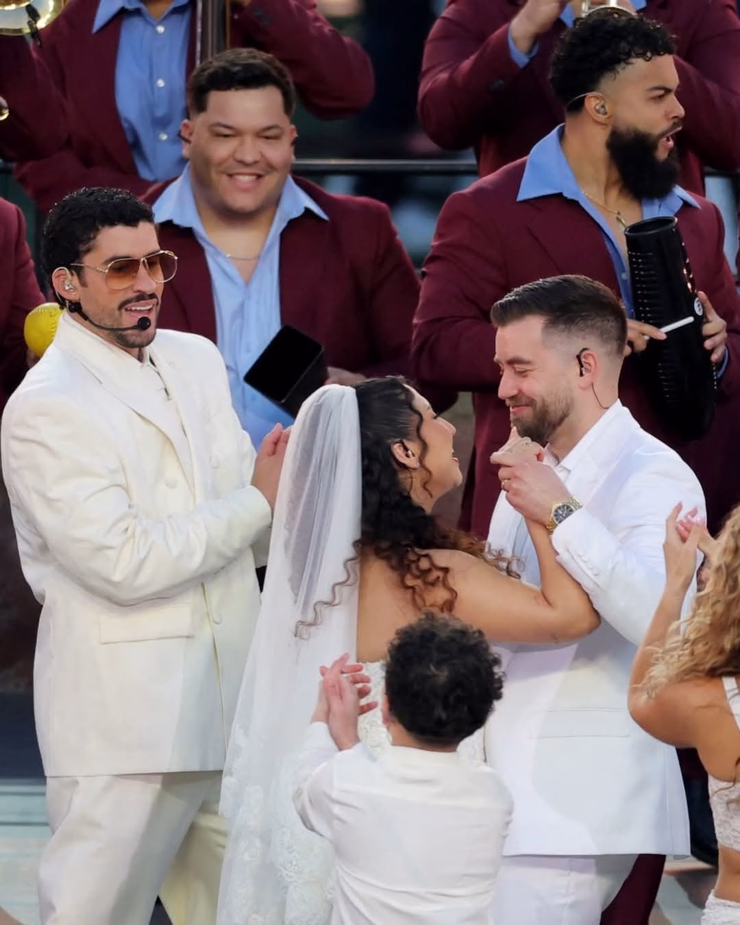 Cuando Bad Bunny entonó los acordes finales de “Mónaco”, la narrativa del show dio un giro inesperado, en medio de una escenografía que evocaba una plaza caribeña, la cámara reveló a una pareja frente a un juez auténtico. Lejos de ser una simulación, la ceremonia contó con todos los requisitos de ley, culminando con un beso que redefinió el concepto de “espectáculo en vivo”.