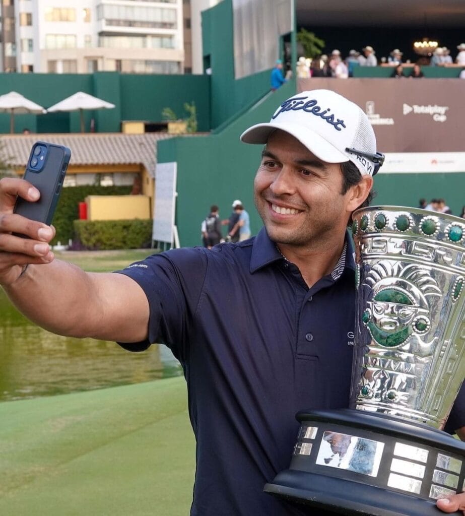 El jugador guatemalteco de 35 años celebró su segundo título del tour más prestigioso de golf en la región, y lo hizo ganando el torneo que se celebró en el campo de Los Inkas Golf Club, Lima, Perú.
